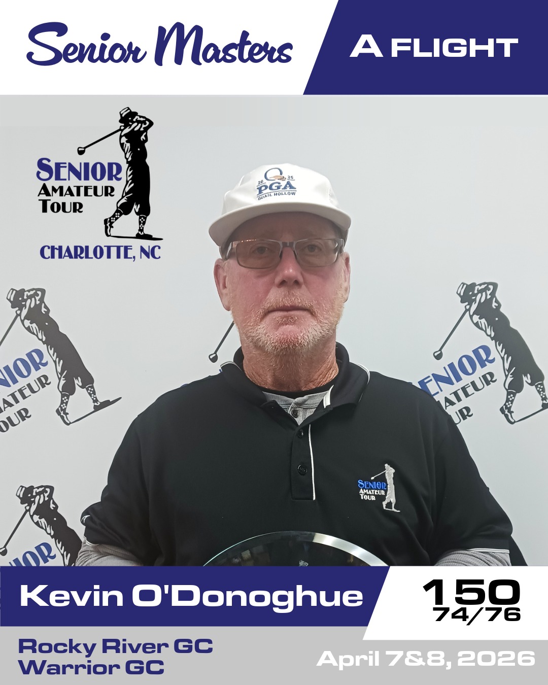 | Kevin O'Donoghue fired an opening round scorcher 74 only to find himself tied with fellow player Steve Roberts. The two combined for 7 birdies on the day. Kevin was able to keep the momentum going on Day 2 with 3 birdies and carded a winning 76, 150 to take home the double points and become a factor in the season points race. |