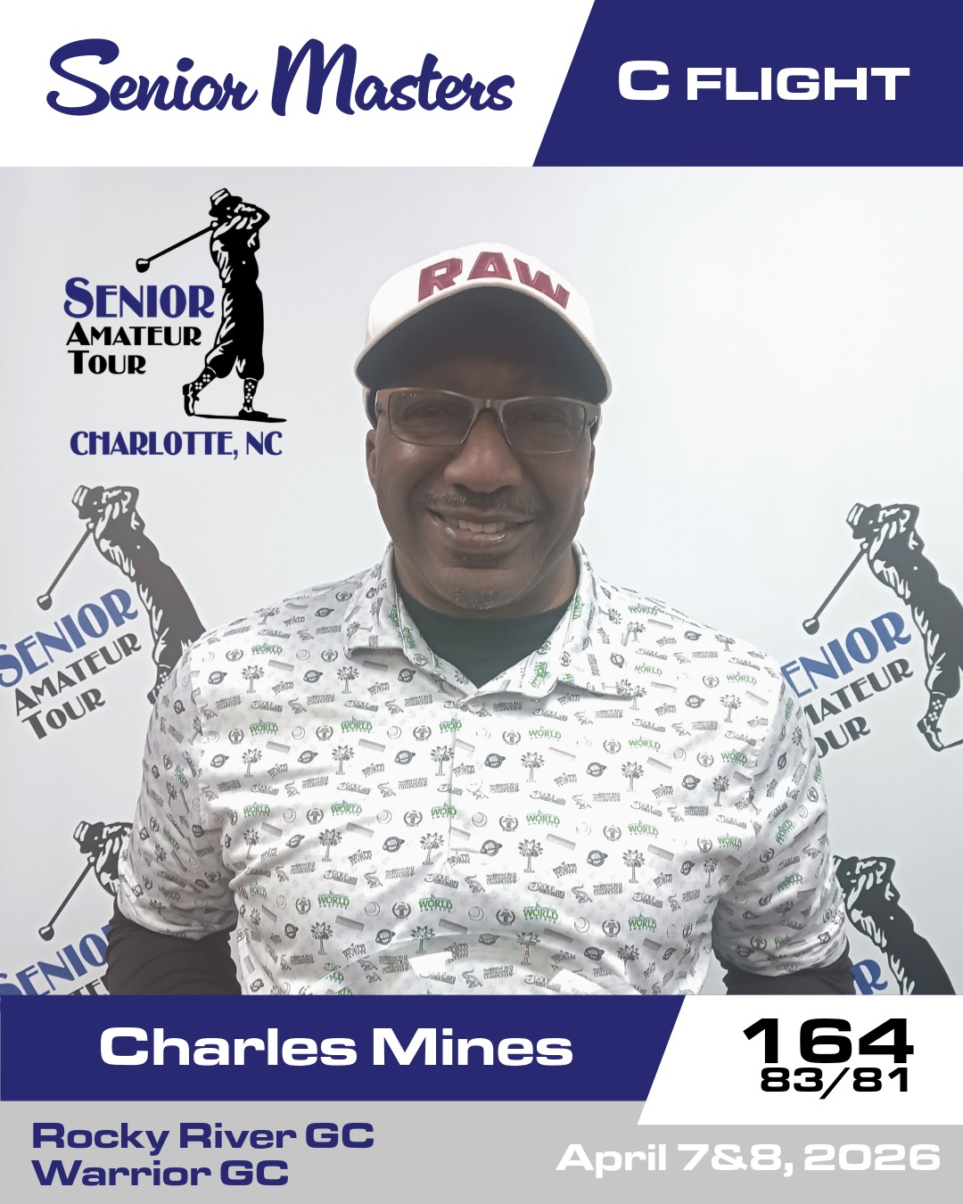 | Charles Mines set the stage early on Day 1 carding an 83 to take a one shot lead overnight. Charles was able to lead wire-to-wire and cleared the field by 4 shots with a follow up 84. Charles vaulted himself up the season points board to 3rd. |