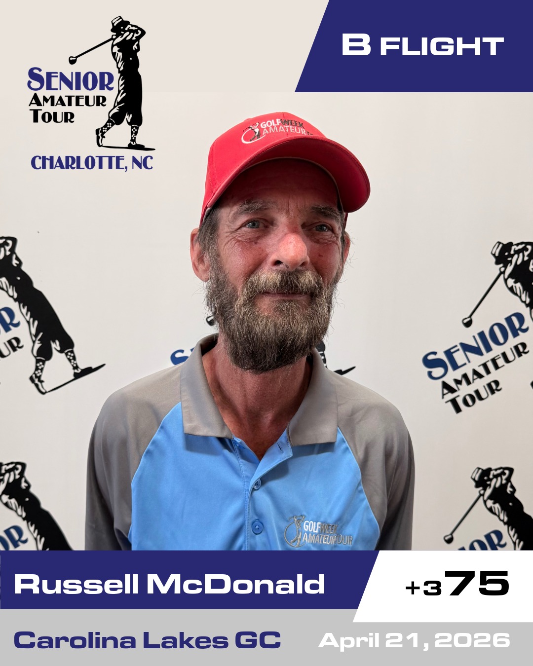 Russell McDonald continues his outstanding play in 2026 winning his 3rd event and back-to-back events with a stellar +3, 75 in the B Flight. Russell drained three birdies on his way to the club house to collect his winnings and the top spot in the season points race. |
