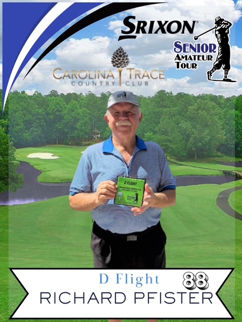 Richard Pfister got off to a good start and put together a consistent round of 89 to claim his second win of the season. Great golf Richard! David Norman chased Richard all day but couldn’t quite catch him as his 92 gave him the runner up spot. Nick Long carded 96 for a third place finish, while Gregory Ingram from the Charlotte Tour captured fourth place with his 97. Closing out the top five Barry Whitesell entered a score of 99.