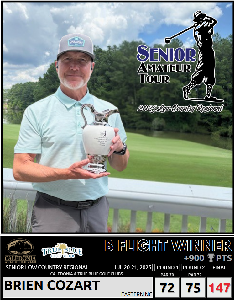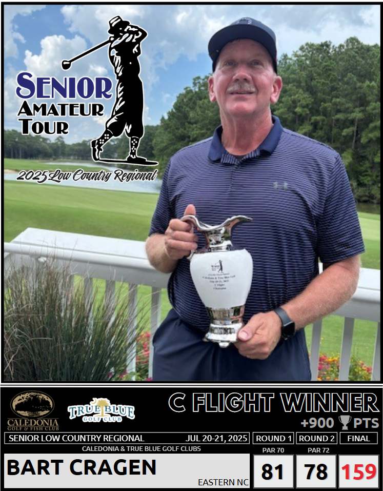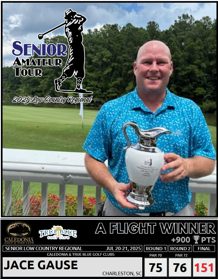 Scott Roberts, Jace Gause, Brien Cozart, and Bart Cragen, and Sherill Johnson all won The Senior Low Country Regional at Caledonia Golf Club and True Blue Golf Club.
